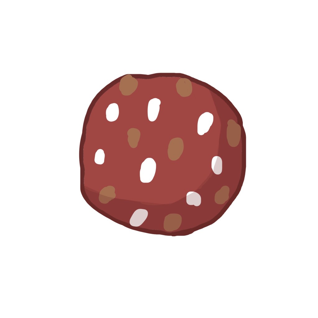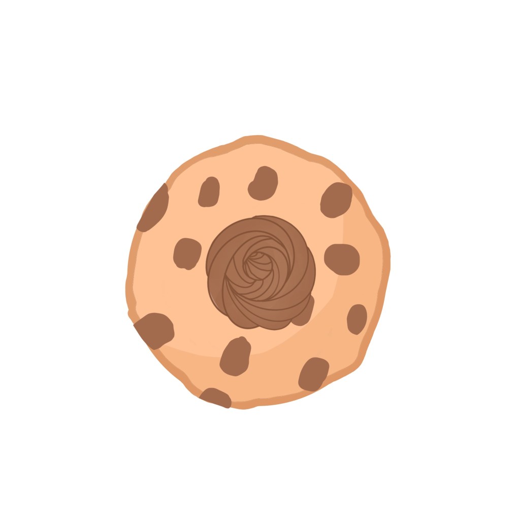 A classic choclate chip kookie iced with chocolate buttercream.